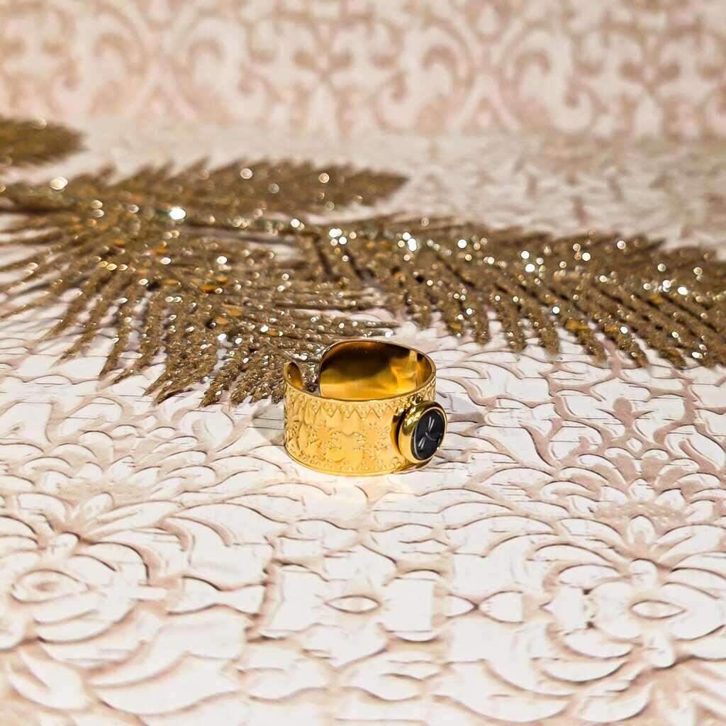 Une bague large au design graphique et au style ethnique qui apporte une touche originale et raffinée à toutes vos tenues. Ce bijou est fait main en acier inoxydable résistant, idéal pour un port quotidien sans allergie ni ternissement 💪.