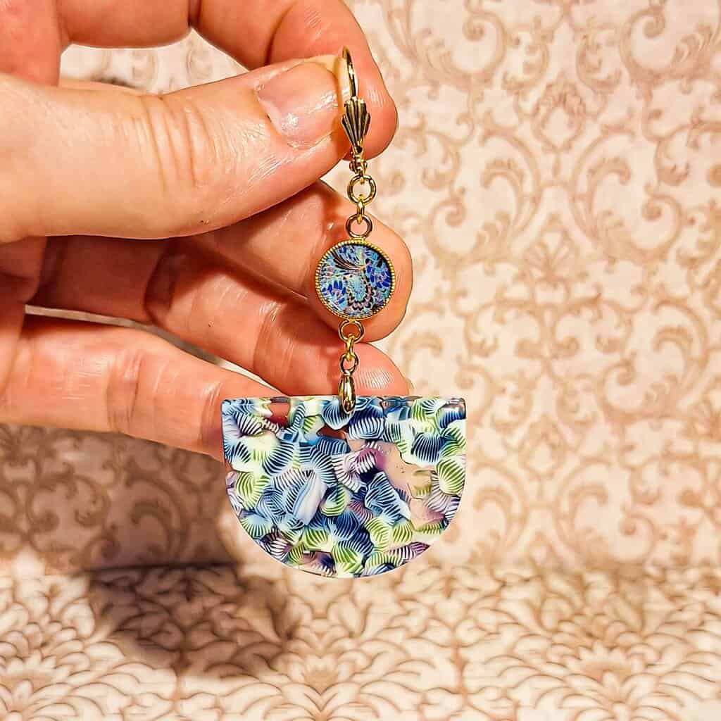 Les pendentifs en acétate coloré sont uniques par leur teinte, rendant chaque création véritablement singulière.