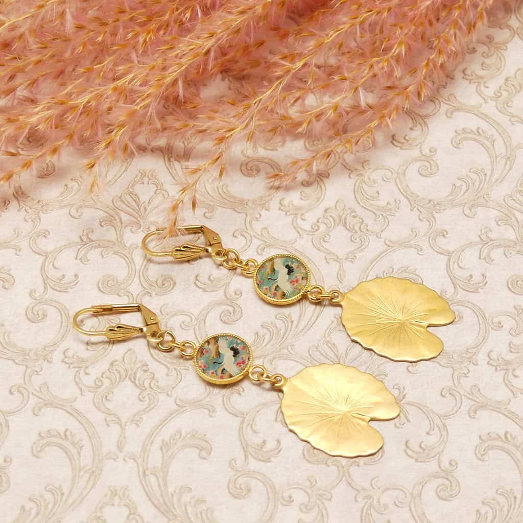 Imaginez ces beautés légères, aériennes, flottant dans l'air du temps...les boucles fleur de lotus se porteront toute l'année, un bijou pour tous les jours, en journée comme en soirée. Osez l'originalité ! Jamais sans bijou! Une création pour les femmes pour qui le bijou est l'accessoire I.N.D.I.S.P.E.N.S.A.B.L.E d'un look boho chic ! Tenue décontractée, chic, fleurie,...choisissez votre motif! Des plumes, des fleurs de lotus, un motif art déco, un oiseau majestueux comme la grue japonaise, une libellule virevoltant parmi les fleurs,...un coeur qui balance entre celles-ci ou celles là...ah la la quel dilemne!