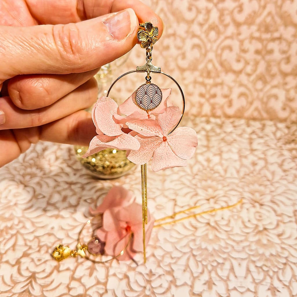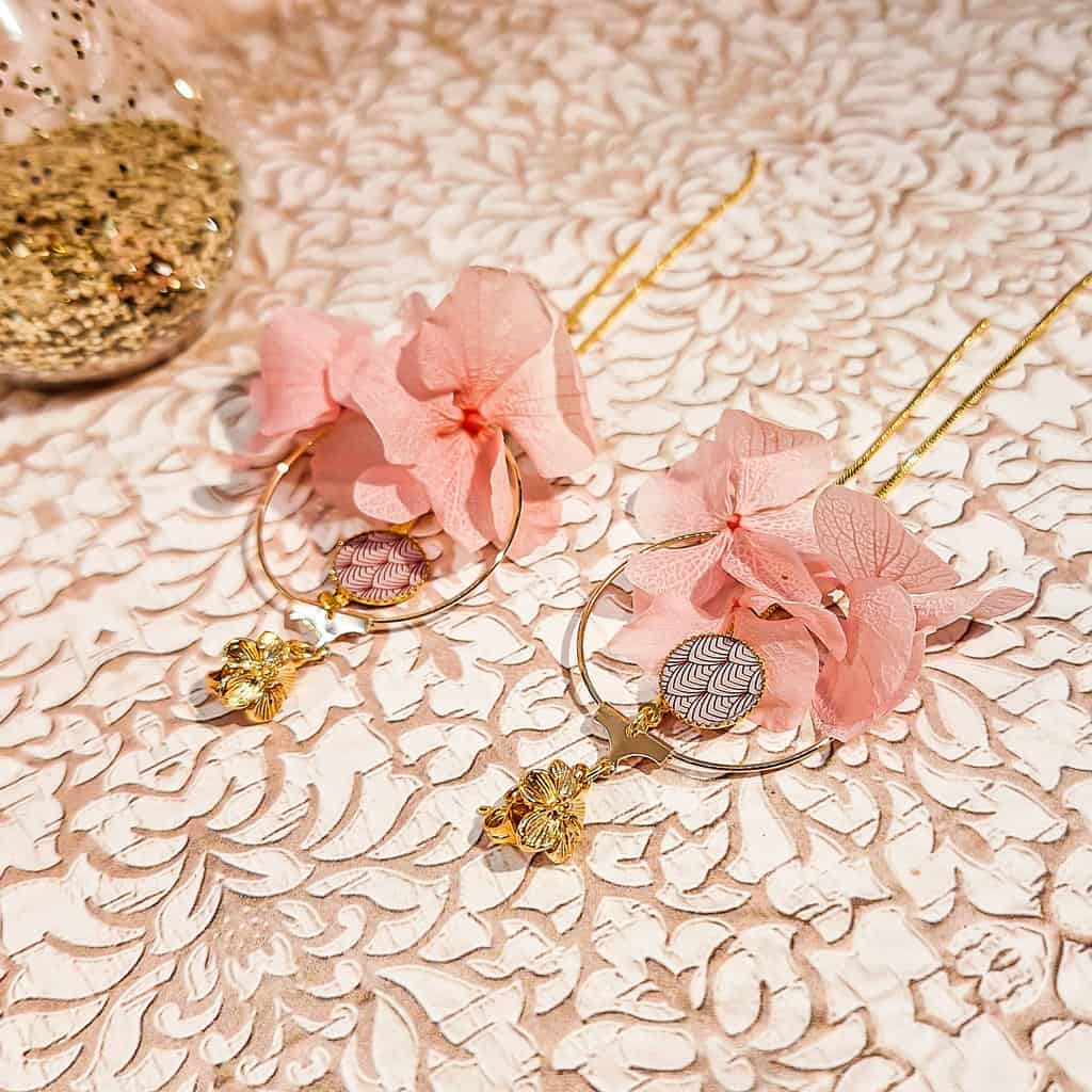 Le modèle étant fait main et chaque fleur étant différente, la création et la disposition, peuvent légèrement varier lors de la confection et du réassort s'il y a...ce qui rend votre paire unique! Les fleurs éternelles sont stabilisées pour rester fraîches plusieurs années.