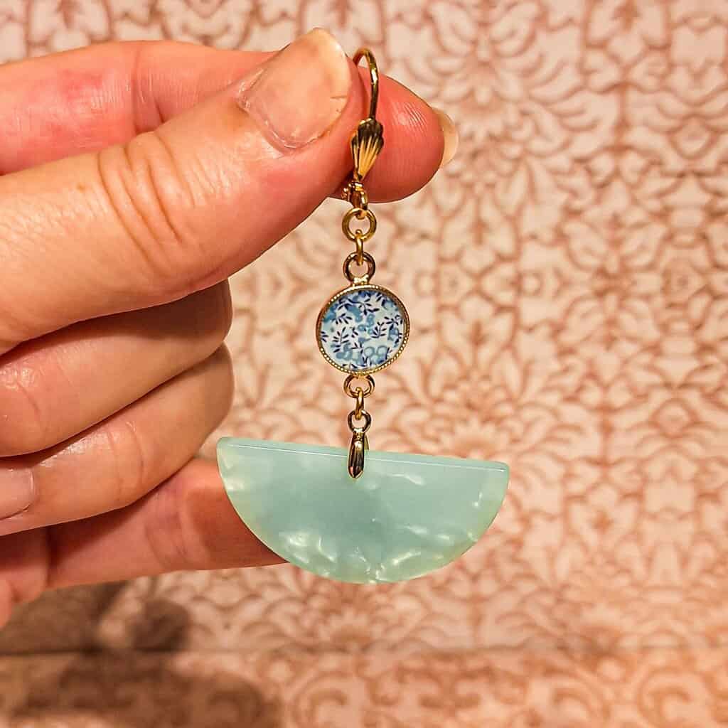 Adoptez un style original avec ces boucles d’oreilles fleurs bleues ! Leur design végétal s’inspire de la nature fleurie, avec des attaches en laiton doré or 24k. La touche colorée turquoise apportera une touche de peps et de raffinement à votre tenue.