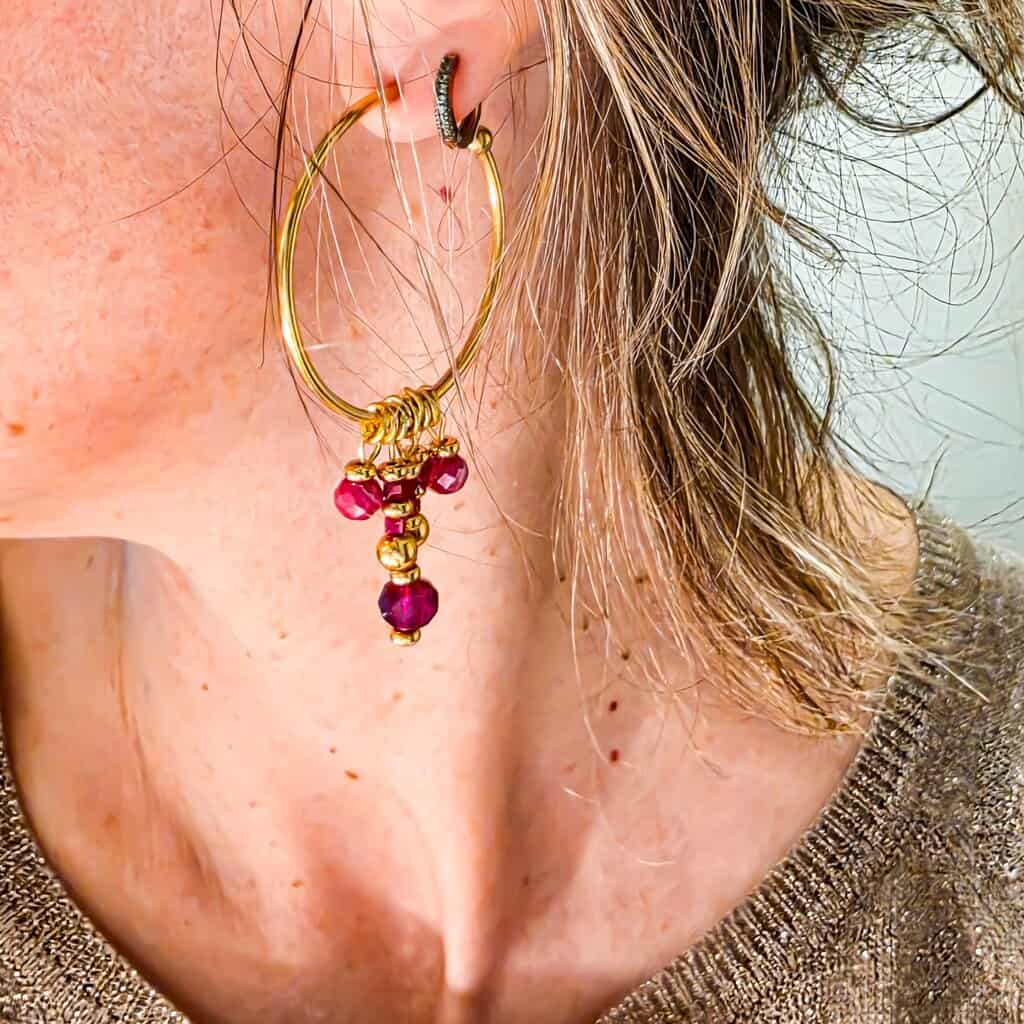 Créoles perles bohèmes en laiton doré 24K, ornées de perles colorées.