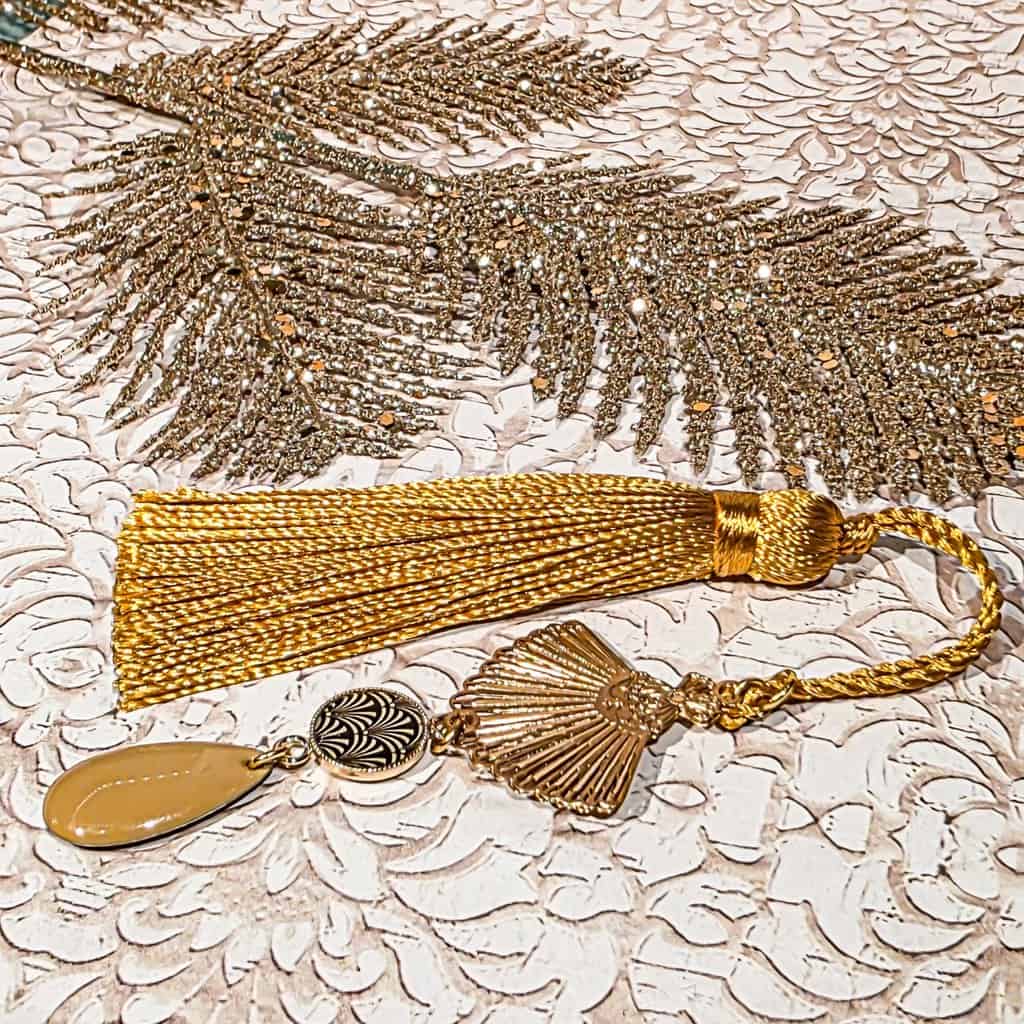 Marque-page Art déco élégant, orné d’un pompon,