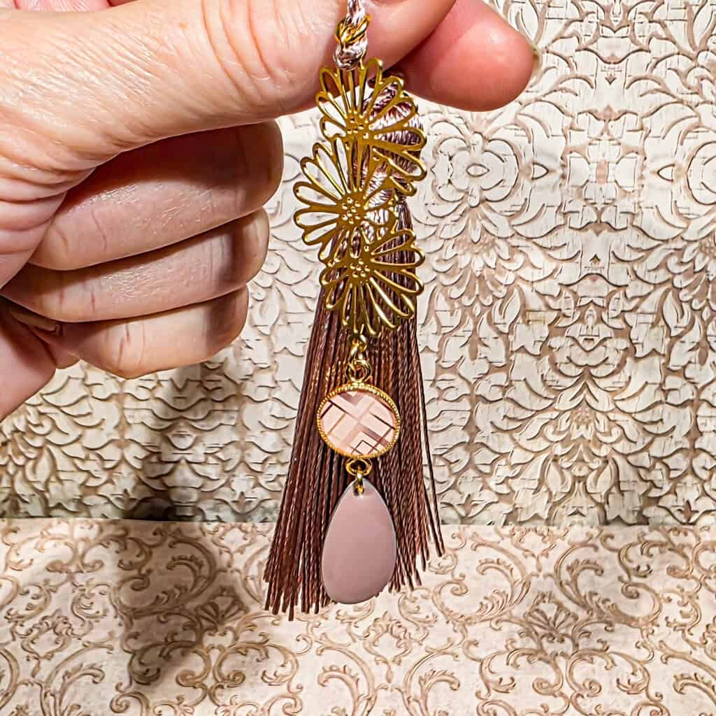 Marque-pages pompon rose 🎀 au motif Art déco doré et raffiné.