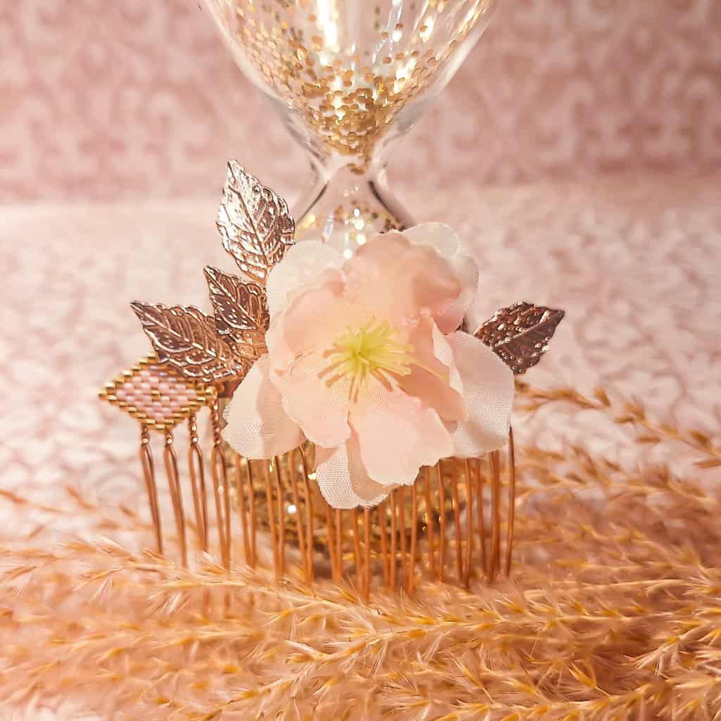 ✔ Peigne barrette : Laiton doré rose (6,4 cm x 3,6 cm)